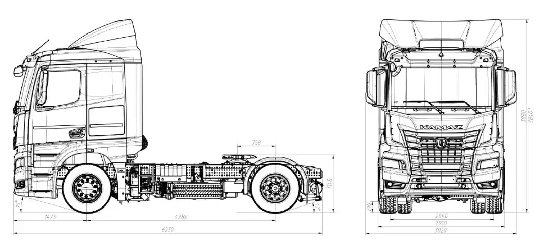 дв. КАМАЗ 689.510-400 (Евро-5), система нейтрализ. ОГ, зад. мост HDZ, пер. ось КАМАЗ, МКБ, ECAS, EBS, ABS, ESP, ASR, кабина низкая, пружинная подвеска каб., кондиционер, ПЖД, тахограф российского стандарта с блоком СКЗИ, ИТИС, мультимедиа БИС, УВЭОС, холодильник, автономный отопитель кабины, ДЗК